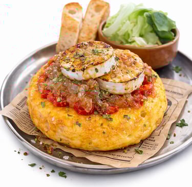 Nos tortillas, préparées individuellement, deviennent le cœur de notre cuisine : généreuses, fondantes et déclinées en versions à la fois classiques et audacieuses. Autour d’elles, une carte inspirée de l’Espagne propose des tartines gourmandes, des recettes à partager et des créations originales.